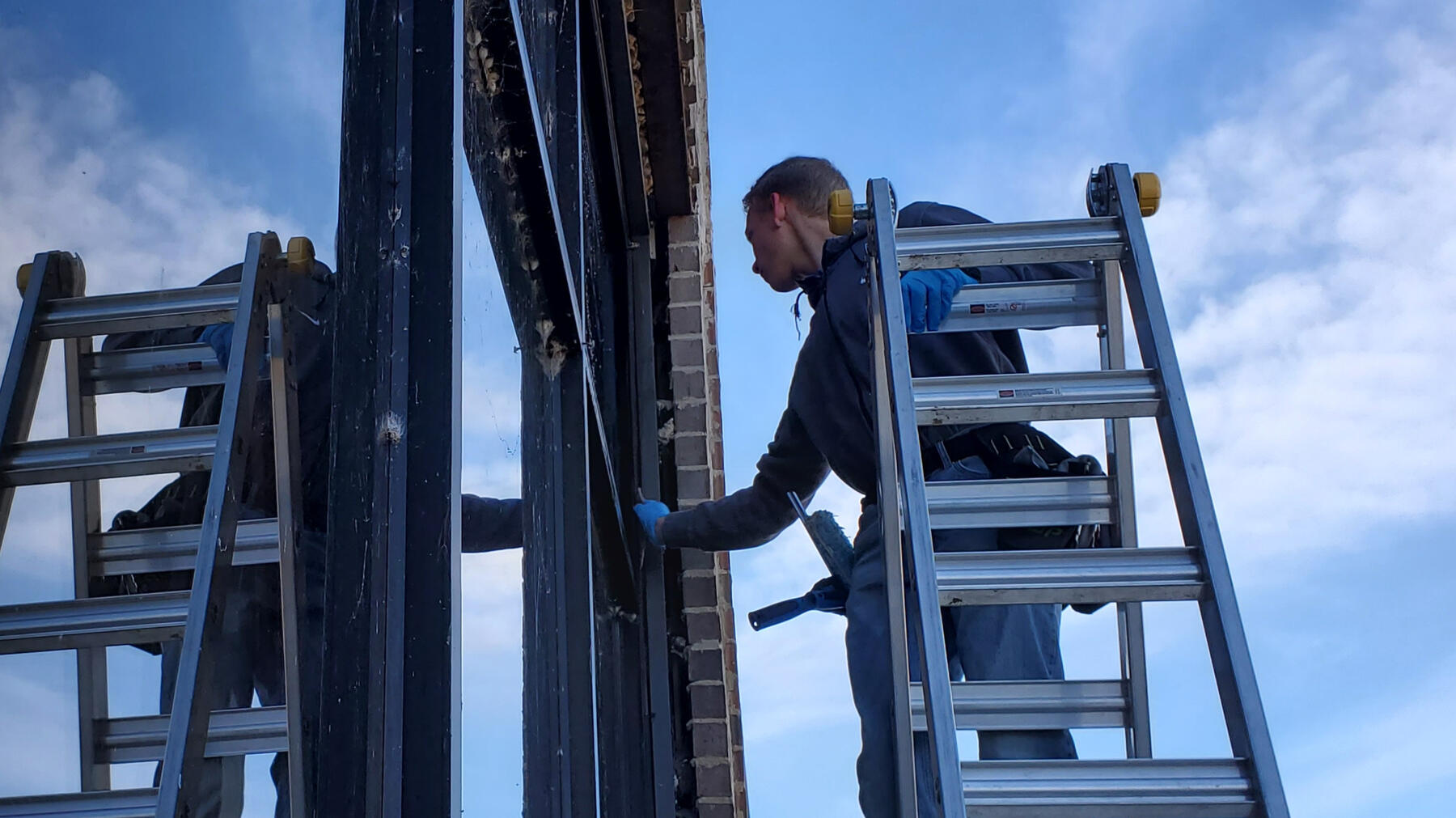 Well, sometimes the stain or concrete splatter wins the battle. And sometimes a window is just unreachable. But we always do our darndest. And we have the tools and skills to clean unusually dirty glass and hard-to-reach windows.
